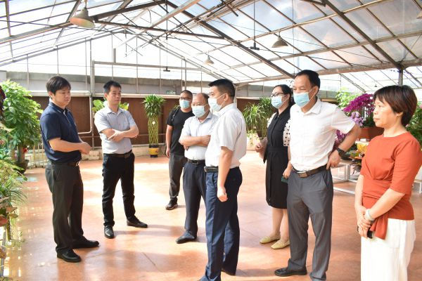 朱根發一行首先來到位於芳村的廣州市花木有限公司園藝產業園,在該公司的公共空間與家庭園藝展示中心、植物栽培溫室大棚進行現場調研,並就家庭園藝展示與花卉市場規劃建設交換了意見。隨後,雙方在水蔭路廣州市花木有限公司總部會議室進行了產學研合作基地揭牌儀式和座談交流。