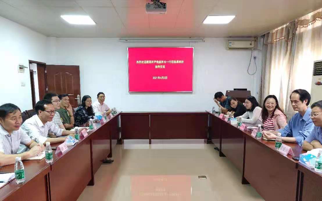 2021年4月2日上午,省農科院蔬菜研究所副所長尹豔一行12人來我所座談交流。果樹所副所長董濤主持座談,研究室主任匡石滋、陳潔珍、鍾雲及邱繼水、黃永敬等科技人員參加了此次座談會。