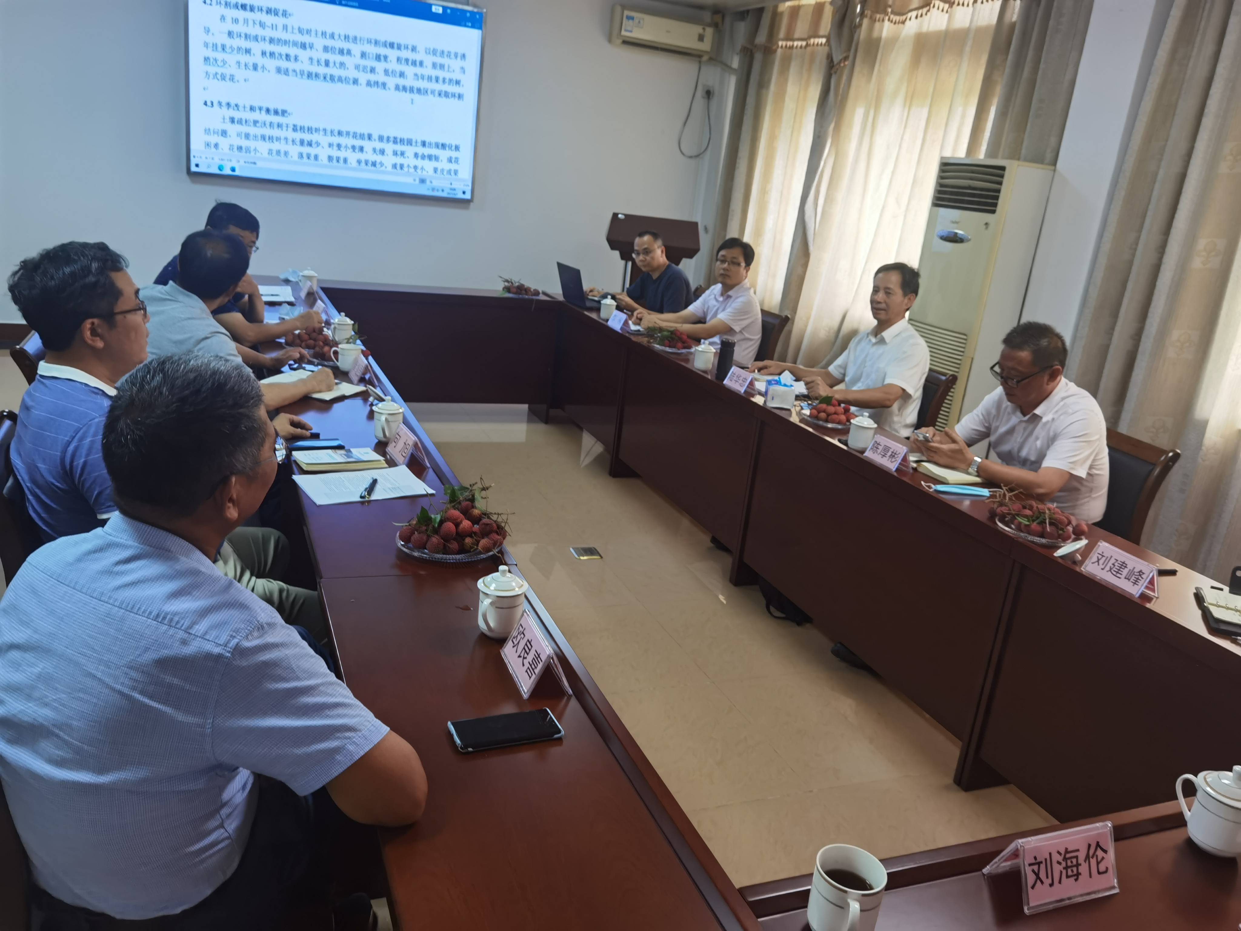 6月8日,廣東省鄉村振興戰略專項資金(農業科技能力提升)荔枝產業技術提升項目負責人、我院院長陸華忠教授組織專家在果樹研究所召開了“克服優質荔枝大小年結果的生產管理技術方案”討論會。會議由陸華忠院長主持,會議邀請國家現代農業(荔枝龍眼)產業技術體係首席專家、華南農業大學陳厚彬研究員、工程學院副院長李君教授、廣東省農科院劉建峰研究員、果樹研究所曾繼吾研究員、向旭研究員、歐良喜研究員、李建光研究員及課題組相關成員參加本次會議。