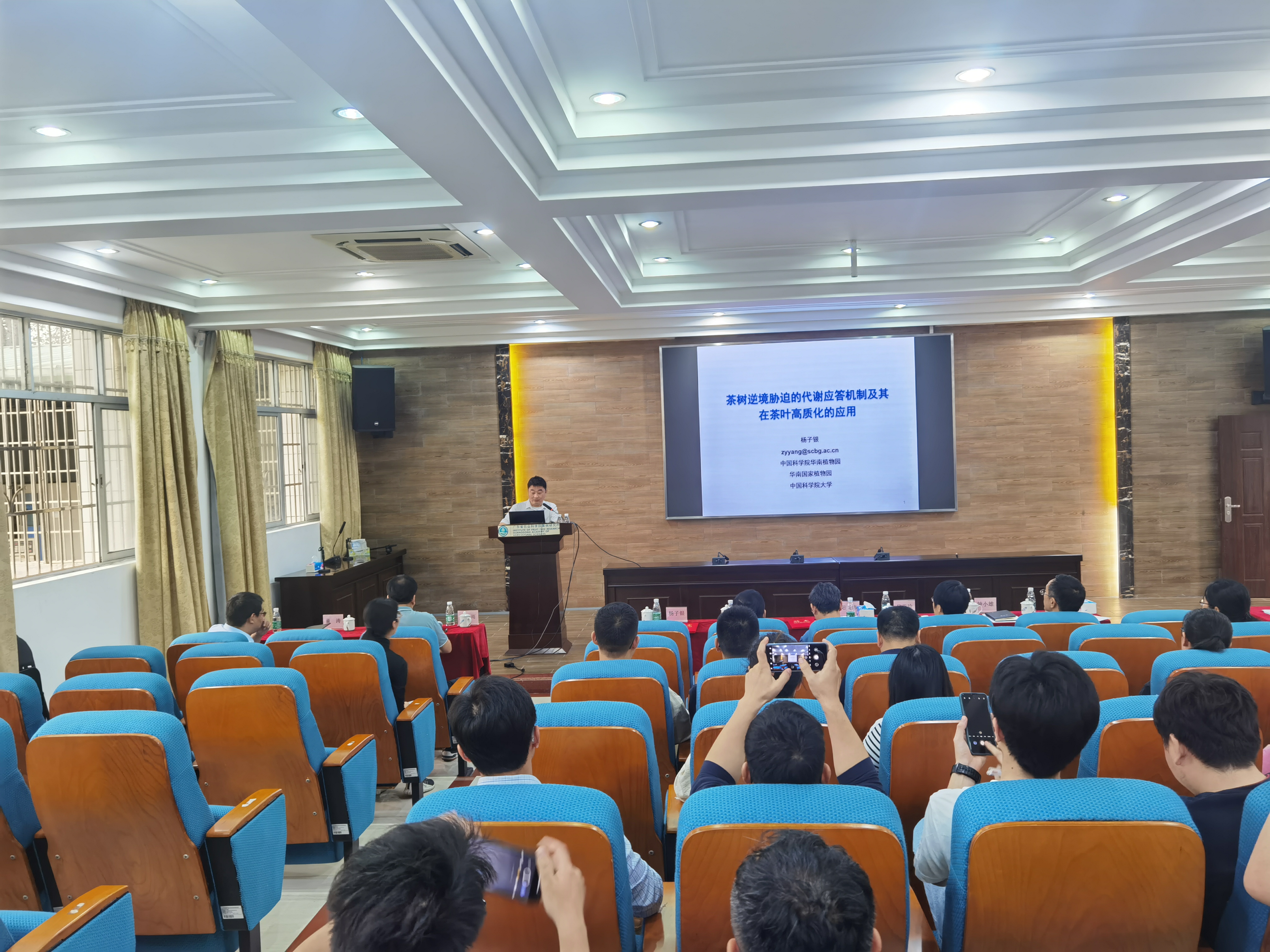 聘任儀式後,陽成偉教授、楊子銀研究員、靳紅磊教授三位專家分別做了題為“植物感受高溫脅迫的分子機製”、“茶樹逆境脅迫的代謝應答機製及其在茶葉高質化的應用”、“植物強光適應機製”的學術報告。與會人員認真聆聽報告,並與三位專家進行了深入交流。