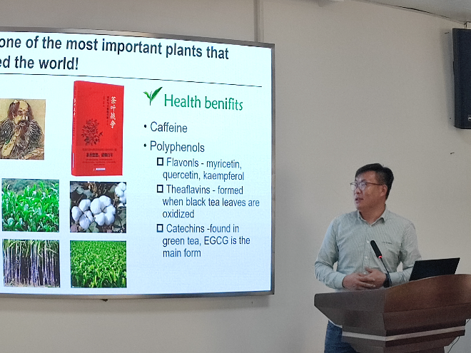 會上,吳巨友、王尉和孔維龍3位專家分別作了題為“梨授粉品種配置的生物學基礎”、“拮抗功能菌感知香蕉枯萎病菌新機製及其應用”和“茶樹泛基因組及重要風味性狀形成機製”的專題報告,參會人員積極提問並與報告人展開充分交流,討論熱烈。李春雨對3位專家所作的精彩報告表示感謝,並希望科技人員能從報告中受到啟發,拓展學術思路與研究領域,進一步提高科研水平。