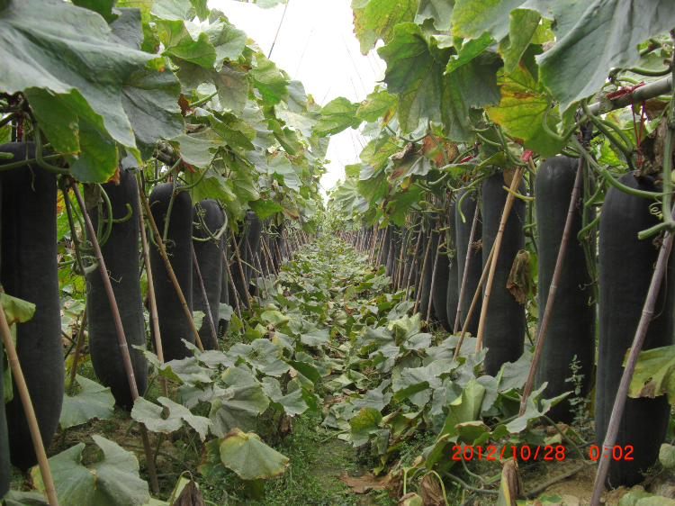 栽培要點:在廣州地區春植通常2月初育苗3月初定植,小拱棚或地膜覆蓋栽培可適當提前。夏秋植播期為6月末至7月初。行距1.8米, 春植株距80厘米, 秋植株距60~ 70厘米。施足基肥,開花期及時補充P、K 肥。坐果後供給充足水分。采收前10~ 15天減少澆水量, 以提高冬瓜貯運性能。坐果前摘除全部側蔓, 坐果後留2~ 3條側蔓, 讓其生長到2片真葉時打頂。每株多留一個瓜,定瓜位置控製在25~30節。坐果定瓜後, 留10片健全葉打頂。注意防治枯萎病、疫病、薊馬。