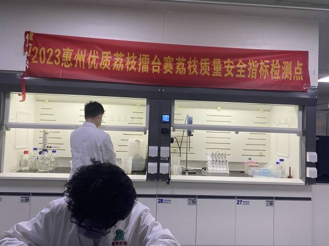 “一般來說,妃子笑荔枝外皮呈現青中透紅的色澤,紅色部分要占到1/2或者2/3以上,肉質口感清、爽、脆為優。”經過現場感官評審後,這些荔枝樣品又被分別送至省農科院質標所和惠州市農檢中心,進一步開展理化品質指標和農藥殘留質量安全指標檢測。