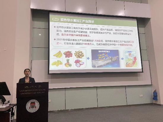 徐玉娟作“亞熱帶特色水果活性成分挖掘及綜合加工關鍵技術創新應用”專題報告,分享交流加工所在亞熱帶特色水果活性成分挖掘及加工關鍵技術方麵的研究,現場討論熱烈。加工所將與澳門大學開展深度科研合作,助力粵港澳大灣區藥食兩用水果產業高質量發展。